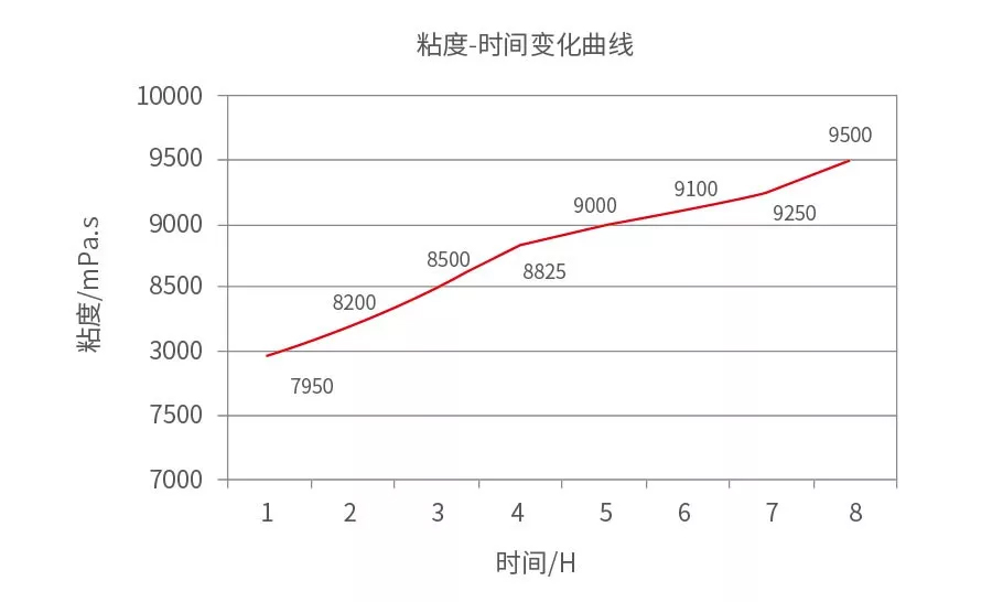 下圖為100℃下粘度隨時間變化曲線, (25℃&60%RH )