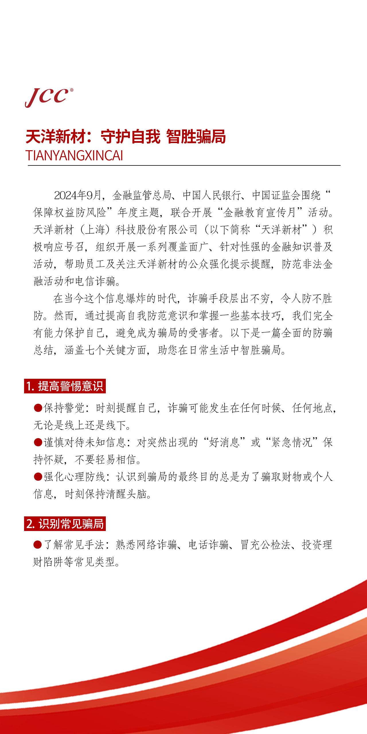 2024年金融教育宣傳月--天洋新材:守護自我,智勝騙局